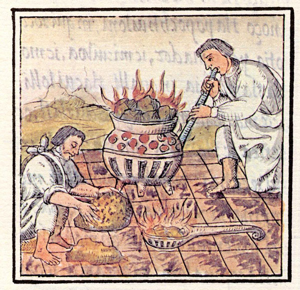 Melting and Casting Gold, Florentine Codex, Book IX (image)